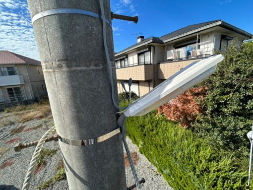 5基を順次移動しながら作業を進め、半日ほどですべての取り替えが完了しました。高所作業車を使用する場合や電柱の状況によって時間は前後しますが、経験豊富な技術者が伺うことで、近隣住民の方々へのご迷惑を最小限に抑えつつ、スピーディーかつ確実に施工を行います。